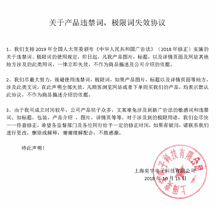 查看詳情>>關(guān)于產(chǎn)品違禁詞,極限詞失效協(xié)議